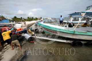 CANCÚN, QUINTANA ROO, 12OCTUBRE2010.- Pescadores resguardan sus embarcaciones ante la cercania del huracán "Paula" en las costas de Quintana Roo, se ha emitido alerta amarila para Cancún y naranja en la isla de Cozumel los puertos a la navegacion han sido cerrados. FOTO: AMARANTA PRIETO/CUARTOSCURO.COM