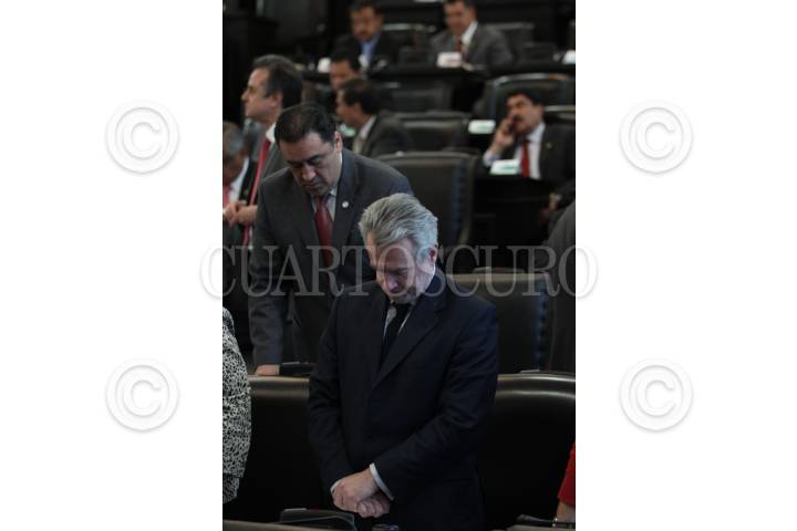 MÉXICO, D.F., 12OCTUBRE2010.- El coordinador panista José González Morfín, atentó a la platica de su correligionario Ricardo García Cervantes, en la sesión de la Cámara de Senadores. FOTO: MOISÉS PABLO/CUARTOSCURO.COM