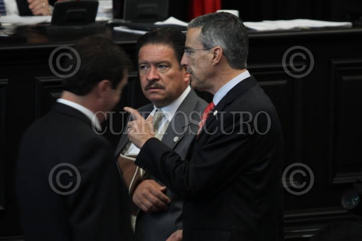 MÉXICO, D.F., 12OCTUBRE2010.- El coordinador panista José González Morfín, atentó a la platica de su correligionario Ricardo García Cervantes, en la sesión de la Cámara de Senadores. FOTO: MOISÉS PABLO/CUARTOSCURO.COM