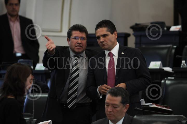 MÉXICO, D.F., 12OCTUBRE2010.- El coordinador panista José González Morfín, atentó a la platica de su correligionario Ricardo García Cervantes, en la sesión de la Cámara de Senadores. FOTO: MOISÉS PABLO/CUARTOSCURO.COM