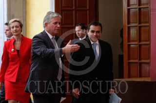 MÉXICO, D.F., 13OCTUBRE2010.- Nicholas Anstee, lord mayor de la Ciuad de Londres; y Ernesto Cordero Arroyo, Secretario de Hacienda y Crédito Público, sostuvieron una reunión en la residencia oficial de Los Pinos. FOTO: IVÁN STEPHENS/CUARTOSCURO.COM