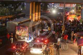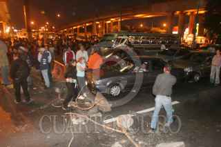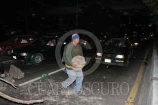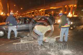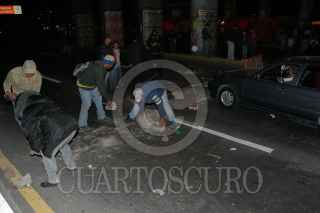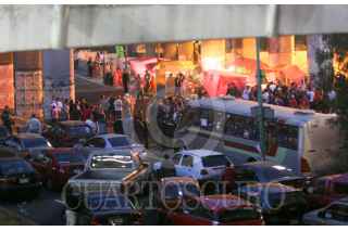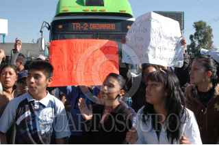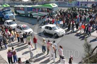 ECATEPEC, ESTADO DE MEXICO, 13OCTUBRE2010.- Un grupo de transportistas y vecinos de la zona, bloquearon por espacio de una hora la avenida Central a la altura de la estacion del metro Rio de los Remedio en protesta por la construccion del Mexibus. FOTO: ENRIQUE ORDOÑEZ/CUARTOSCURO.COM