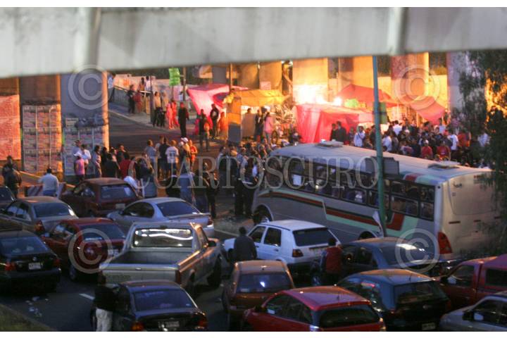 ECATEPEC, ESTADO DE MEXICO, 13OCTUBRE2010.- Un grupo de transportistas y vecinos de la zona, bloquearon por espacio de una hora la avenida Central a la altura de la estacion del metro Rio de los Remedio en protesta por la construccion del Mexibus. FOTO: ENRIQUE ORDOÑEZ/CUARTOSCURO.COM