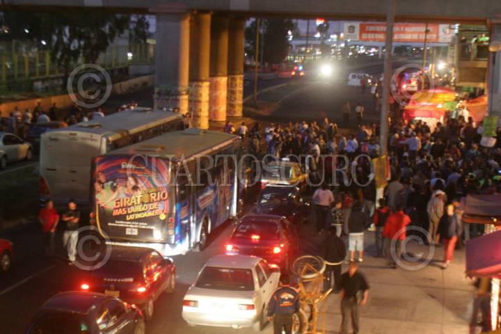 ECATEPEC, ESTADO DE MEXICO, 13OCTUBRE2010.- Un grupo de transportistas y vecinos de la zona, bloquearon por espacio de una hora la avenida Central a la altura de la estacion del metro Rio de los Remedio en protesta por la construccion del Mexibus. FOTO: ENRIQUE ORDOÑEZ/CUARTOSCURO.COM
