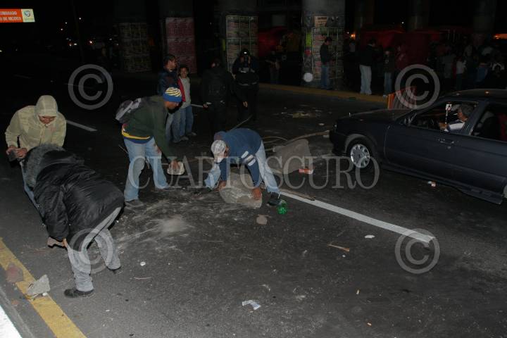 ECATEPEC, ESTADO DE MEXICO, 13OCTUBRE2010.- Un grupo de transportistas y vecinos de la zona, bloquearon por espacio de una hora la avenida Central a la altura de la estacion del metro Rio de los Remedio en protesta por la construccion del Mexibus. FOTO: ENRIQUE ORDOÑEZ/CUARTOSCURO.COM
