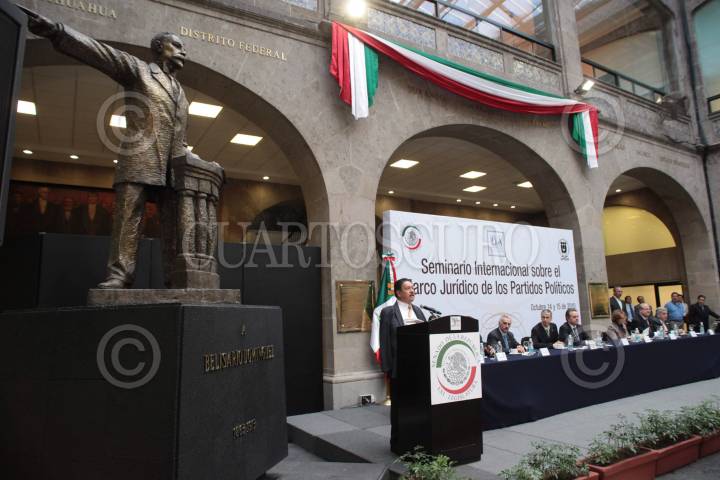 MÉXICO, D.F., 14OCTUBRE2010.- Soledad Loaeza, analista política, José González Morfín, coordinador de los senadores panistas, Carlos Navarrete, coordinador de los senadores del PRD y Arturo Nuñez, senador perredista, durante la inauguración del seminario internacional sobre el Marco Jurídico de los Partidos Políticos en el patio central del Senado. FOTO: MOISÉS PABLO/CUARTOSCURO.COM