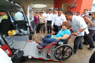 VILLAHERMOSA, TABASCO, 15OCTUBRE2010.- Se puso en marcha los servicios de radio taxis para uso de personas con discapacidades físicas y minusvalidos en las instalaciones del Centro de Rehabilitación y Educación Especial donde señalaron que las unidades del servicio publico cuentan con adaptaciones especiales ya que cuentan con rampa de acceso directo de sillas de ruedas al vehículo. FOTO: MARCO POLO GUZMAN HERNANDEZ/CUARTOSCURO.COM