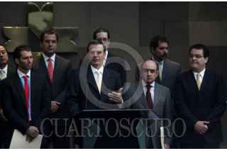 MÉXICO, D.F., 15OCTUBRE2010.- Armando Lopéz Cárdenas, secretario de Finanzas del Distrito Federal durante una conferencia de prensa después de la colocación de Certificados Bursátiles Fiduciarios del Gobierno del Distrito Federal que se realizo en el piso de remates de la Bolsa Mexicana de Valores. FOTO: RODOLFO ANGULO/CUARTOSCURO.COM