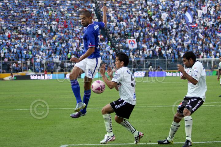 MÉXICO, D.F., 16OCTUBRE2010.- Con tres goles de Alejandro Vela 6´, Horacio Cervantes 47´ y Christian "el Chaco" Giménez 89´ la Maquina del Cruz Azul pitó a toda maquina para reforzar su superliderato en la jornada 12 de la liga de fútbol local. Los Santos de Torreón nada pudieron hacer, aún a pesar de contar con oportunidades que desaprovecharon, ante los celestes en el estadio Azul. FOTO: MOISÉS PABLO/CUARTOSCURO.COM