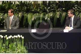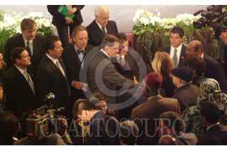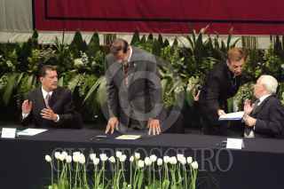 México D.F 18 Abril 2004.- El senador del PRI Enrique Jackson, Vicente Fox, presidente de México, Sergio Paez, presidente de la Unión Interparlamentaria durante la inauguración de la 110 Asamblea de la Unión Interparlamentaria, que se llevo a cabo en el Teatro de la Ciudad. FOTO: Eunice Adorno/CUARTOSCURO.COM
