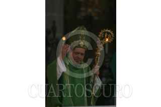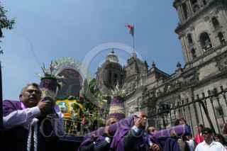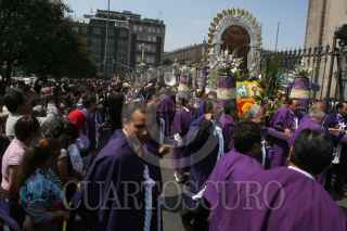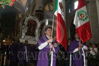 MEXICO, D.F., 17OCTUBRE2010.- Una delegacion de Peru, asistio a la misa dominical donde mostraron una imagen de "El Senor de los Milagros' misma que al termino de la homilia, realizo un recorrido por algunas calles del centro. FOTO: ENRIQUE ORDOÑEZ/CUARTOSCURO.COM