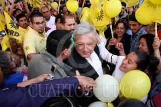 TEXCOCO, ESTADO DE MÉXICO, 17OCTUBRE2010.- Andres Manuel Lopez Obrador excandidato a la presidencia, continua con su gira por el Estado de México, en esta ocasión recorrió los municipios de Texcoco, San Vicente Chicoloapan, Chimalhuacan, y La Paz, donde dijo que ya no era viable que el PRD diera marcha atrás a su alianza con el PAN, ya que el Partido de la Revolución Democrática se encontraba amarrado con Felipe Calderón. FOTO: ADRIANA ALVAREZ/CUARTOSCURO.COM