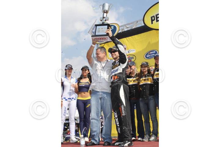AMOZOC, PUEBLA, 17OCTUBRE2010.-El piloto mexicano, Germán Quiroga, de la escudería Telcel Racing, obtuvo la primera posición en la serie Nascar 2010, que se llevó a cabo en el autódromo Miguel E. Abed del municipio de Amozoc. FOTO: FRANCISCO GUASCO/CUARTOSCURO.COM