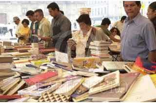 México, D.F. 19 ABRIL 2004.- Para celebrar el día mundial del libro la coalición de libreros, el GDF, el Museo de la caricatura y la delegación Cuauhtémoc, entre otros se reunieron para realizar la II Feria del libro de ocación que se encontrará en la explanada del zócalo capitalino del 19 al 23 de abril. FOTO: Sandra Perdomo/CUARTOSCURO.COM