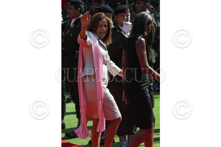 MÉXICO, D.F., 19OCTUBRE2010.- Margarita Zavala, esposa del presidente de México, se despide al término de la ceremonia de bienvenida de Dean O. Barrow, primer ministro de Belice que se realizó en la explanada del monumento a "Don Francisco I. Madero" en la residencia oficial de Los Pinos. FOTO: MOISÉS PABLO/CUARTOSCURO.COM