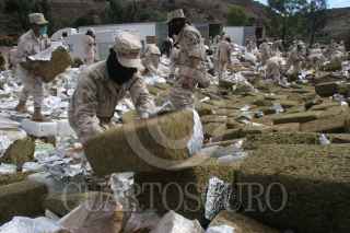 TIJUANA, BAJA CALIFORNIA, 20OCTUBRE2010.- Las 134 toneladas de marihuana que fueron confiscadas hace unos días por policías preventivos, estatales y el ejército en una acción conjunta se disponen a ser incineradas por militares en el Centro de Adiestramiento Militar de la Segunda Zona Militar. FOTO: SAÚL LÓPEZ/CUARTOSCURO.COM