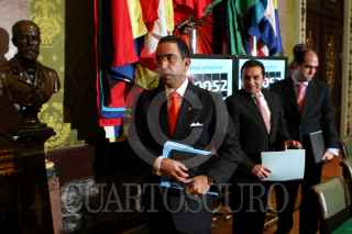 MÉXICO, D.F., 20OCTUBRE2010.- Javier Lozano, secretario del Trabajo; Ernesto Cordero, secretario de Hacienda y Daniel Karam Toumeh, director del Instituto Mexicano del Seguro Social al termino de una conferencia de prensa que se realizo en el Palacio Nacional. FOTO: RODOLFO ANGULO/CUARTOSCURO.COM