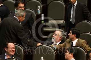 MÉXICO, D.F., 21OCTUBRE2010.- Jorge Carlos Ramírez Marin, diputado presidente de la mesa directiva durante la sesión ordinaria de la Cámara de Diputados en donde diputados del PRD y PAN evitaron votar un transitorio de la reforma de ley para crear vales de medicinas. FOTO: RODOLFO ANGULO/CUARTOSCURO.COM