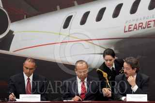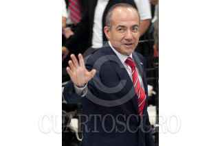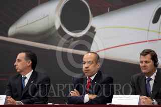 QUERÉTARO, QUERÉTARO, 21OCTUBRE2010.- Felipe Calderón Hinojosa, Presidente de la República, durante la inauguracion de la planta LearJet 85 de Bombardier. FOTO: DEMIAN CHAVEZ/CUARTOSCURO.COM