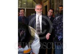 México, D.F. 20 ABRIL 2004.- El senador panista Diego Fernández de Cevallos bromea con camarógrafos y reporteros luego de ser entrevistado. FOTO: Sandra Perdomo/CUARTOSCURO.COM