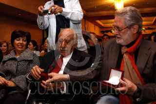 PACHUCA, HIDALGO, 22OCTUBRE2010.- Julio Mayo Souza, fotoperiodista, recibió la noche de ayer la Medalla al Mérito Fotográfico 2010, esto como parte del Encuentro Nacional de Fototecas que organiza el Sistema Nacional de Fototecas del Instituto Nacional de Antropología e Historia (INAH). El evento reúne a reconocidas personalidades del ámbito fotográfico, investigadores y creadores, así como a estudiantes y público interesado en la imagen. FOTO: CAROLINA RAMÍREZ/CUARTOSCURO.COM