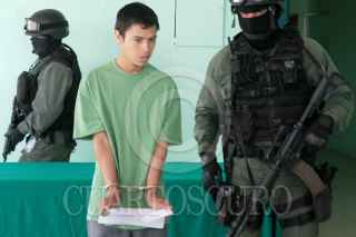 VILLAHERMOSA, TABASCO, 22OCTUBRE2010.- Jose Francisco Reyes Sanchez, alias "El Paco Medico" fue presentado en las instalaciones de la Policía Ministerial tras haber sido detenido en la cabecera municipal de Huimanguillo, donde tenia privada de su libertad a una menor de edad. El detenido reconoció ser el responsable y autor de ocho secuestro y de haber privado de la vida a tres personas mas entre ellas a dos de sus cómplices. Finalmente dijo haber sido halcón del brazo armado Zeta y cometió los delitos con la participación de adolescentes estudiantes en los municipios de Comalcalco, Cunduacan, Cardenas y Huimanguillo. FOTO: MARCO POLO GUZMAN HERNANDEZ/CUARTOSCURO.COM