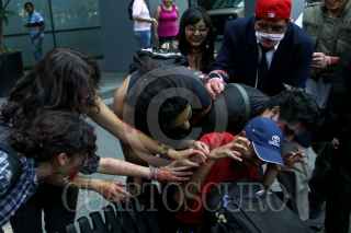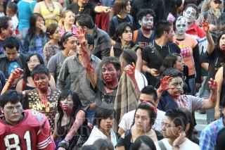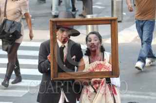 MÉXICO, D.F., 23OCTUBRE2010.- Cientos de personas caracterizadas de Zombies, marcharon del monumento a la Revolución al Zócalo capitalino en la 4ta edición de la Zombie Walk. FOTO: RODOLFO ANGULO/CUARTOSCURO.COM