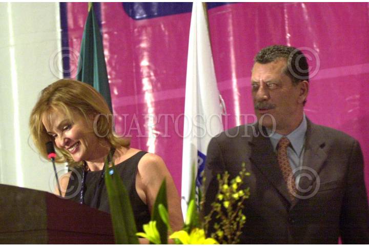 México D.F 20 Abril 2004.- El senador Enrique Jackson, la actriz Jessica Lange, embajadora de la buena voluntad de la UNICEF, Sergio Páez Verdugo ( Presidente de la Unión Interparlamentaria), Anders B. Johnsson (Secretario General de la UIP) muestran un manual para los parlamentarios a cerca de los derechos de los niños. FOTO: Eunice Adorno/CUARTOSCURO.COM