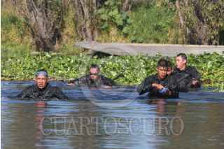MÉXICO, D.F., 25OCTUBRE2010.- Elementos del grupo táctico "Zorros" de la Policía de la Ciudad de México, durante la prueba de resistencia del tercer pentatlon de comandos urbanos, realizados en instalaciones policíacas de la delegación Tlahuac. FOTO: SAÚL LÓPEZ/CUARTOSCURO.COM