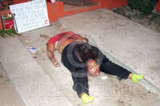 NUEVO LAREDO, TAMAULIPAS 25OCTUBRE2010.- Una mujer de alededor de 28 a 30 años fue encontrada sin vida por las autoridades con la cabeza cercenada y colocada entre sus piernas y junto a su cuerpo un letrero que señalaba le fue quitada la vida por haber presentado una denuncia en contra de un grupo delictivo. Uno de sus dedos le fue tambien cercenado por los autores del crimen. El hallazgo causó conmoción en la ciudad luego que fue ubicado el cuerpo frente a la casa ubicada en Patzcuaro 4847 en la colonia La Concordia en horas de la madrugada. FOTO: JOAQUÍN MURRIETA/CUARTOSCURO.COM