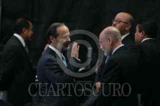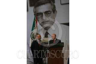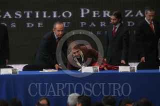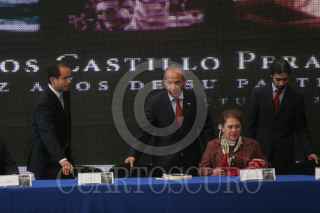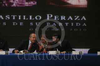 MÉXICO, D.F., 25OCTUBRE2010.- Felipe Calderón, presidente de México y Luis Felipe Bravo Mena, Secretaria Particular de la Presidencia, durante la ceremonia de conmemoración de Carlos Castillo Peraza a diez años de su muerte. FOTO: SAÚL LÓPEZ/CUARTOSCURO.COM