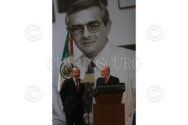 MÉXICO, D.F., 25OCTUBRE2010.- Felipe Calderón, presidente de México y Luis Felipe Bravo Mena, Secretaria Particular de la Presidencia, durante la ceremonia de conmemoración de Carlos Castillo Peraza a diez años de su muerte. FOTO: SAÚL LÓPEZ/CUARTOSCURO.COM