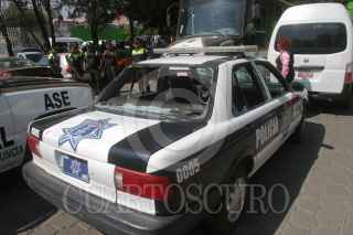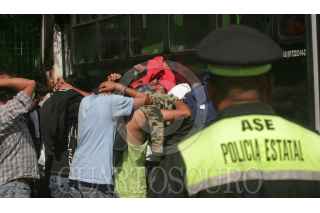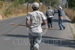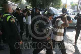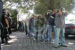 TEPETLAOXTOC, ESTADO DE MÉXICO, 26OCTUBRE2010.- Elementos de la Agencia de Seguridad Estatal detuvieron a 63 personas después de que dos grupos rivales se enfrentaran a golpes durante un desalojo de un predio de 22 hectáreas de en la comunidad de Santiago Papalotla, entre los detenidos hay 23 menores edad y una mujer. FOTO: SAÚL LÓPEZ/CUARTOSCURO.COM
