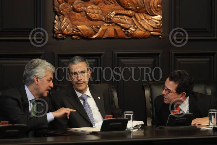 MÉXICO, D.F., 26OCTUBRE2010.- Más de una decena de apagones se presentaron en la sesión de la Cámara de Senadores. Ante esta situación el petista Ricardo Monreal bromeo sobre las consecuencias que han sufrido los capitalinos por el decreto presidencial de desaparecer la compañía de Luz y Fuerza del Centro. FOTO: MOISÉS PABLO/CUARTOSCURO.COM