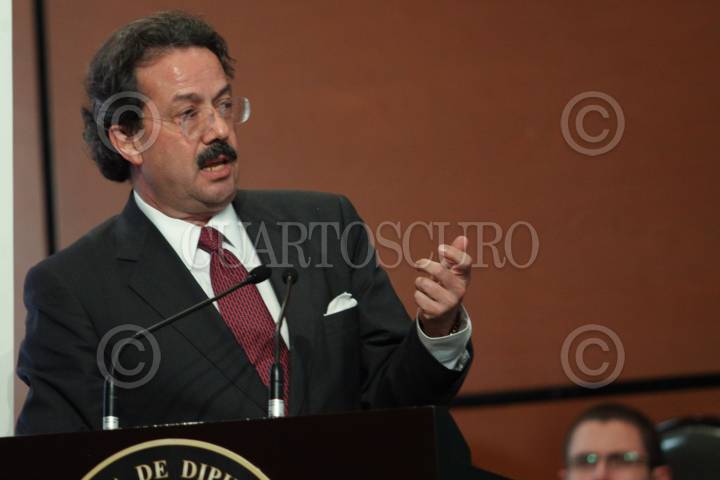 MÉXICO, D.F., 26OCTUBRE2010.- Una sombra se proyecta sobre una de las paredes del salón Verde de la Cámara de Diputados mientras yace vacía la curul donde legisladores y el compareciente en turno ofrecían sus puntos de vista. Juan Molinar Horcasitas, Secretario de Comunicaciones y Transportes, abandonó su comparecencia esta tarde por un altercado con diputados de diferentes partidos. FOTO: MISAEL VALTIERRA/CUARTOSCURO.COM