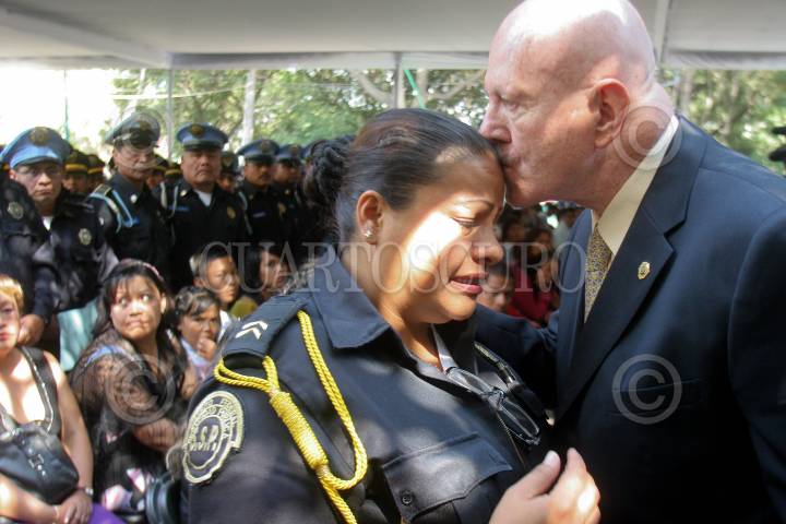 MÉXICO, D.F., 27OCTUBRE2010.- Maricela Martinez Lara, oficial de policía le pidió entre lagrimas a Manuel Mondragón y Kalb, Secretario de Seguridad Pública del Distrito Federa, un apoyo que no recibía desde hace años y el cual es necesario para solventar necesidades familiares, motivo por el que Mondragón y Kalb, escucho, consoló y se comprometió en dar solución al problema de su compañera de trabajo. FOTO: SAÚL LÓPEZ/CUARTOSCURO.COMFF