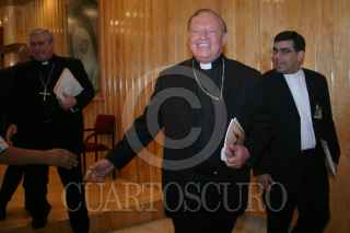 México, D.F.21 Abril 2004.- El cardenal Juan Sandoval Iñíguez, obispo de Guadalajara a su llegada a una conferencia de prensa sobre el XLVII congreso eucarístico internacional a realizarse en Guadalajara, Jalisco el próximo mes de octubre. FOTO: Nelly Salas/CUARTOSCURO.COM