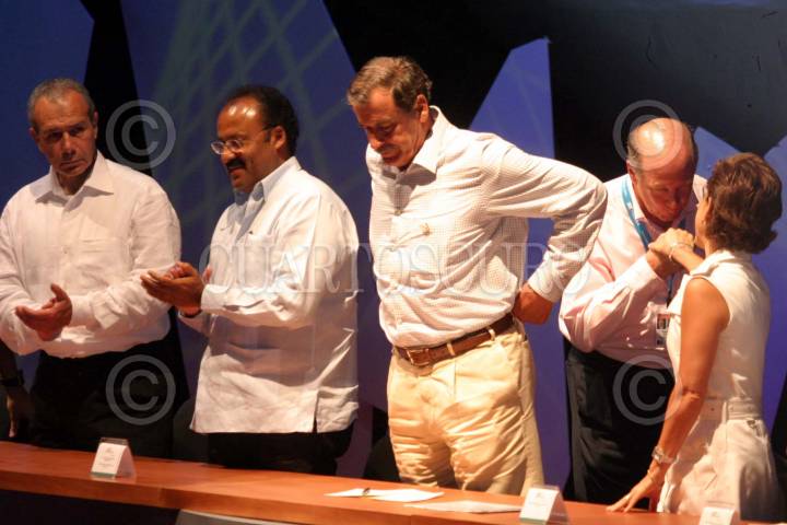 Acapulco, Guerrero, 21ABRIl2004.- José Murat, gobernador de Oaxaca, visito las instalaciones del Tianguis Turístico 2004. FOTO: Moisés Pablo/CUARTOSCURO.COM