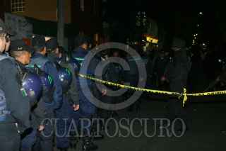MÉXICO, D.F., 28OCTUBRE 2010.- Con disparos de arma de fuego de alto calibre fueron ejecutados siete hombres en la calle de Granada y avenida del Trabajo en la colonia Morelos. Según los estudios periciales se trató de un enfrentamiento entre la banda de "los perros" y la de "el chino". Estos grupos se disputan el control de la venta de droga en la zona. FOTO: LM ACEVEDO/CUARTOSCURO.COM