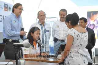 TEAPA, PUEBLA, 28OCTUBRE2010.- José Ángel Cordova Villalobos, secretario de salud y Felipe Calderón Hinojosa, Presidente de México, encabezaron el lanzamiento del programa "Consulta Segura: 1era Consulta" y se entregó la póliza de seguro popular no. 41 millones FOTO: EDUARDO MORALES/CUARTOSCURO.COM