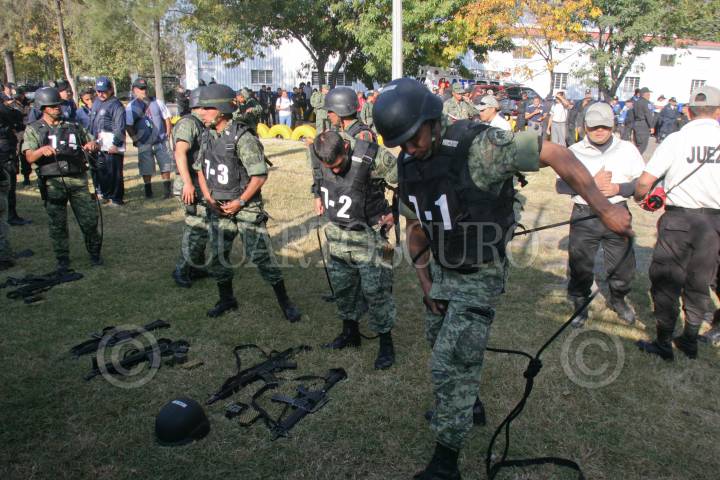 MÉXICO, D.F., 28OCTUBRE2010.- Integrantes del Cuerpo de Fuerzas Especiales de la Secretaria de la Defensa Nacional, durante la practica de resistencia del tercer pentatlón de comandos urbanos, realizado en las instalaciones de la base "Piraña" ubicado en la delegación Tlahuac. FOTO: SAÚL LÓPEZ/CUARTOSCURO.COM