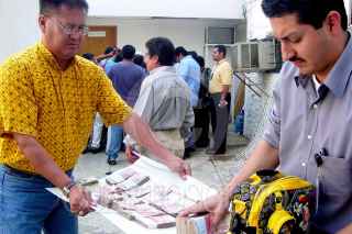 Tuxtla Gutierréz, Chiapas 27Abril 2004.- La delegación de la PGR en el estado presentó a cuatro traficantes de indocumentados que intentaban sobornar a elementos de la corporación con 250 mil pesos para liberar a tres de sus complices. FOTO: Oscar León/CUARTOSCURO.COM