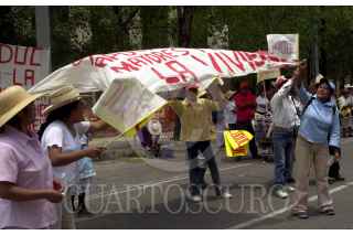 México D.F., 28ABR2004.- Integrantes del Congreso Agrario Permanente (CAP) realizaron un plantón frente a la Secretaria de Desarrollo Social, después de una marcha que partió del monumento a la Revolución. FOTO: Eunice Adorno/CUARTOSCURO.COM