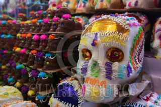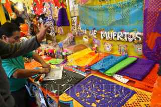 MÉXICO, D.F., 29OCTUBRE2010.- En mercados de la ciudad de México, como el de San Ángel, los comerciantes ofrecen papel picado, dulces típicos y las tradicionales calaveritas de azúcar para la ofrenda del Día de Muertos. FOTO: ISAAC ESQUIVEL/CUARTOSCURO.COM