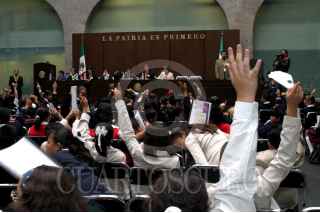 México, D.F. 28 ABRIL 2004.- Votación en las mesas de trabajo realizadas por los integrantes del segundo parlamento de niñas y niños . FOTO: Sandra Perdomo/CUARTOSCURO.COM
