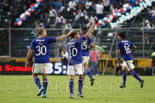 MÉXICO, D.F., 30OCTUBRE010.- Emanuel Villa celebra con Christian Gimenez de la Maquina Celeste del Cruz Azul su anotación en contra del Puebla de la Franja durante el encuentro de la jornada 15 del torneo Apertura 2010 que se realizo en el estadio Azul ganando la Maquina Celeste 1 gol por 0. FOTO: RODOLFO ANGULO/CUARTOSCURO.COM