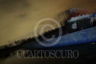 MÉXICO, D.F., 31OCTUBRE2010.- Como parte de los festejos de Día de Muertos en el embarcadero de Cuemanco y como cada año se realiza la representación de "La Llorona" en este sitio turístico. En la imagen una persona que forma parte de la escenificación se transporta en una lancha. FOTO: MISAEL VALTIERRA/CUARTOSCURO.COM