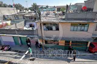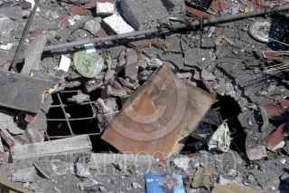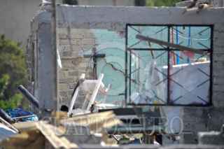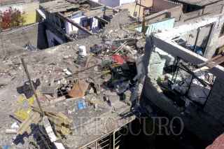 MÉXICO, D.F., 31OCTUBRE2010.- Con severos daños quedo la casa en la que se registro la explosión el día de ayer en la calle Sur 157 en la colonia Ramios Millán en la delegación Iztacalco; dejando un gran boquete en la zona del techo donde se ubicaba la pólvora. Un Cristo, testigo de los hechos quedo intacto así como un rosario que de este colgaba y una fotografía en el lugar de uno de los jóvenes que perdiera la vida. FOTO: LUIS CARBAYO/CUARTOSCURO.COM