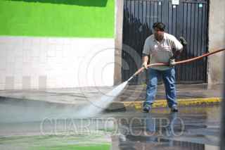 MÉXICO, D.F., 31OCTUBRE2010.- Personal de salud acudieron al lavado de las calles mediante una mezcla de cloro y agua para evitar algún foco de infección en la zona donde se recogieron restos humanos arrojados por la explosión en la calle Sur 157 en la colonia Ramos Millán Delegación Iztacalco. FOTO: LUIS CARBAYO/CUARTOSCURO.COM