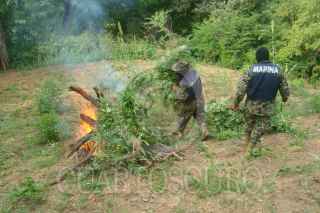 MAZATLAN, SINALOA., 31OCTUBRE2010.- Elementos de la Marina - Armada de México incineraron 206 plantíos de marihuana, con un aproximado de casi tres millones de ese enervante, que se encontraban en una superficie de 200 mil metros cuadrados. FOTO: CUARTOSCURO.COM